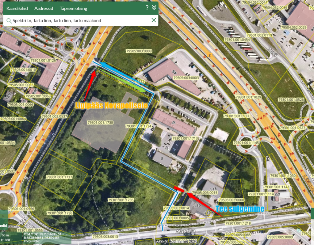 NB! Ehitustöödega seoses on ligipääs Novapolise hoonesse piiratud perioodil 10. – 15. aprill (k.a). Suletud on Aardla tn poolne sissesõit, Spektri tänavale pääseb Riia mnt kaudu.